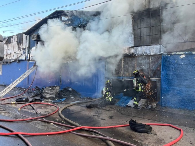 En el lugar un local de neumáticos ardía en su totalidad generando peligro de propagación a las estructuras colindantes.